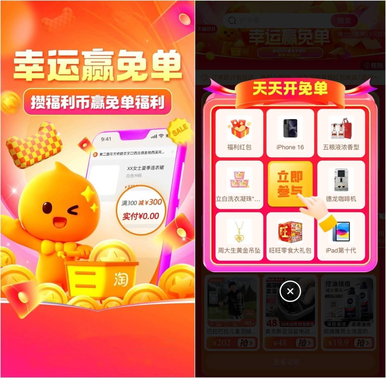 淘宝点击链接或复制口令明天进入活动界面可抽红包或实物!攒福利币最高得300亓免单!