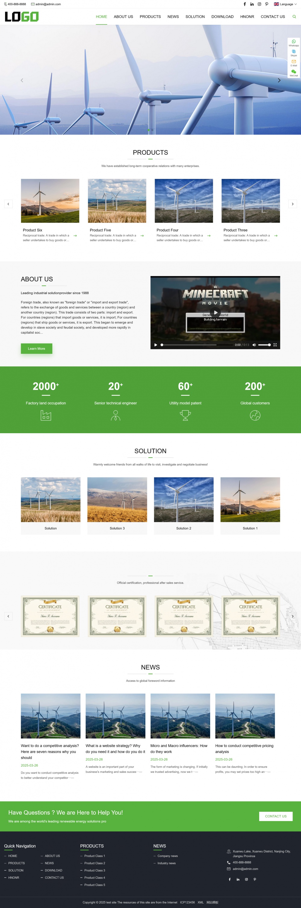 - 便捷后台:后台地址:域名/admin.php,默认账号admin,密码admin(建议首次登录后修改)。后台支持直接修改联系方式、传真、邮箱、地址等,操作简便。