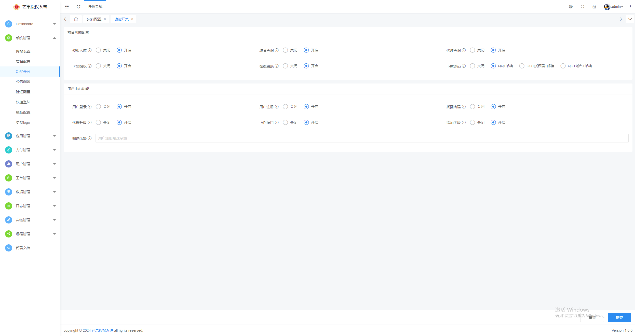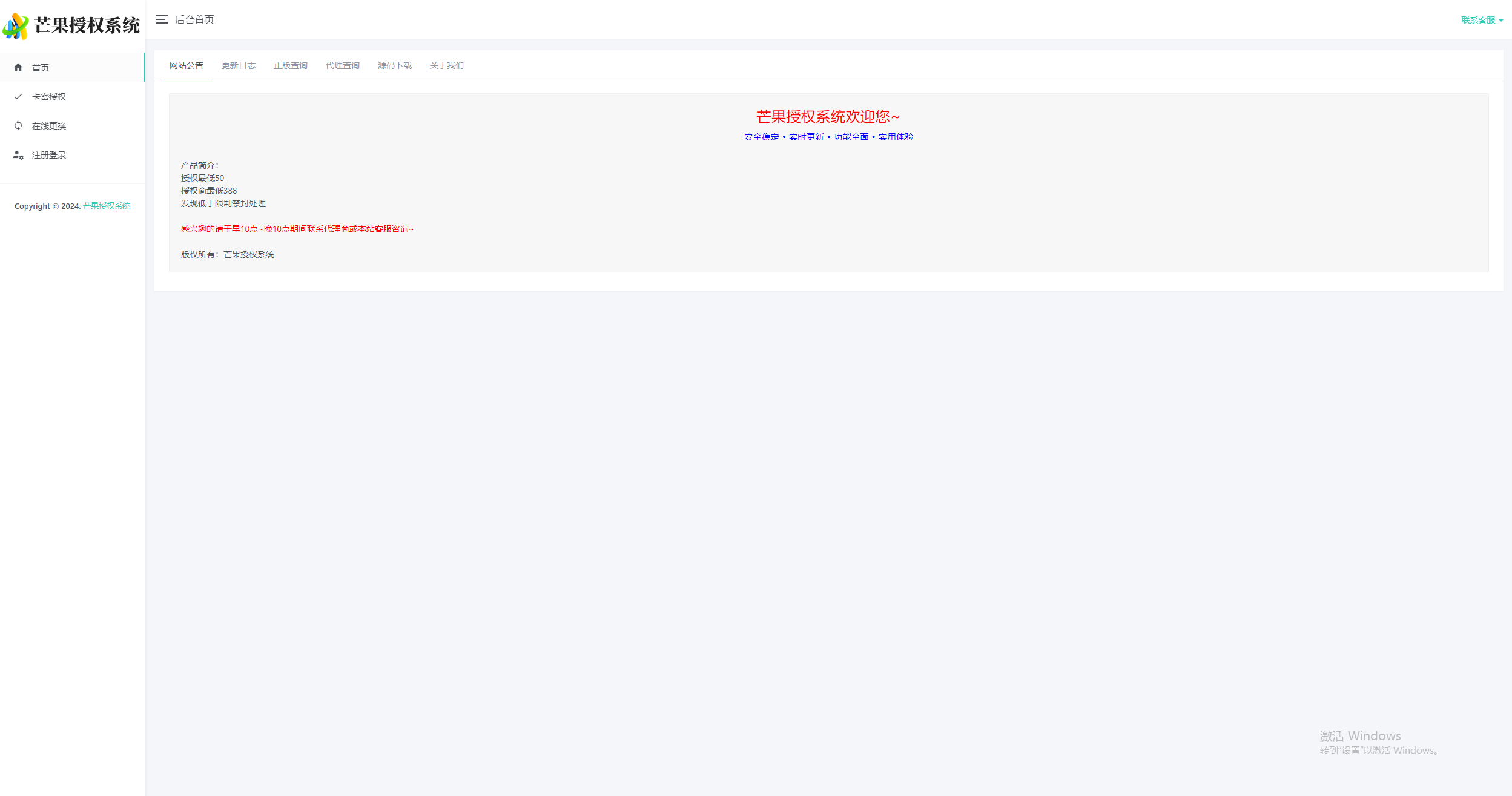4、模板自由选择 卡密在线授权 自助更换授权