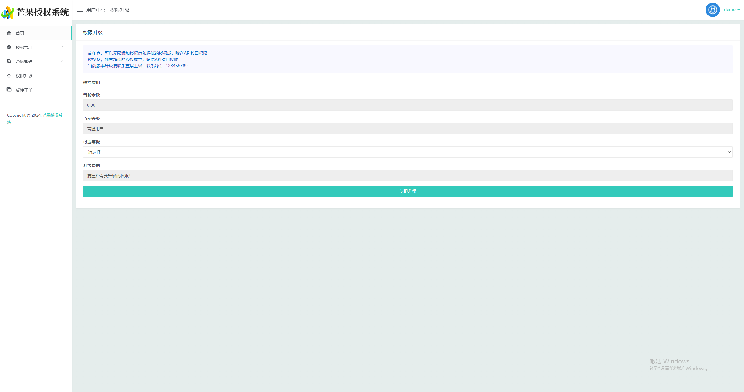 3、用户自助授权 自助升级权限 系统版本递增更新