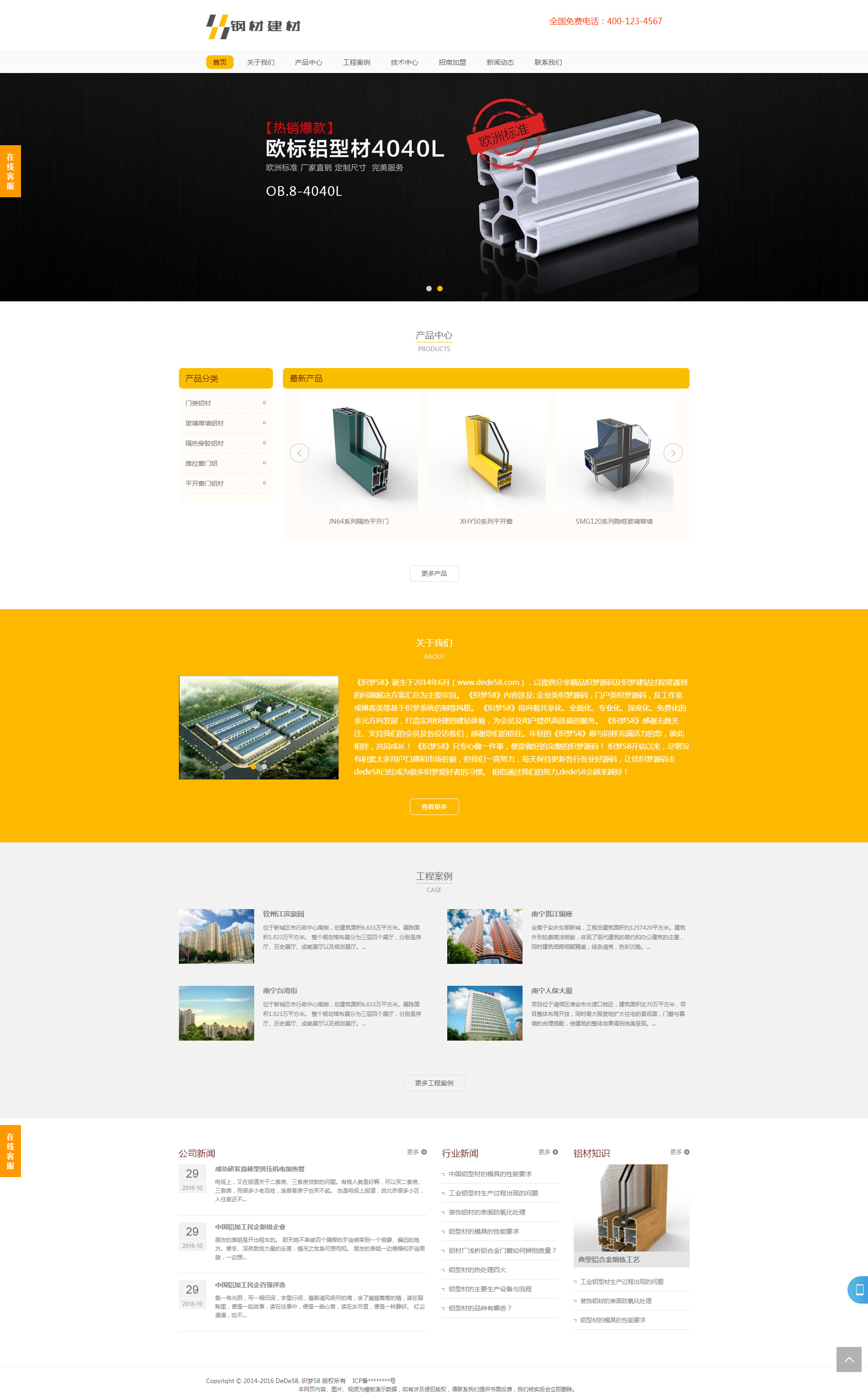 刚才建材五金企业dedecms模板,织梦系统整站源码。HTML5响应式布局自适用手机移动端设备,适合铝业、铝合金、建材类企业网站使用,一款通用的企业网站源码,可以快速创建一个企业建站。