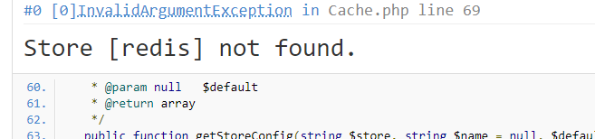 网上找了半天,都是说redis配置忘记放在stores里面了,但是我这放里面还是报错。