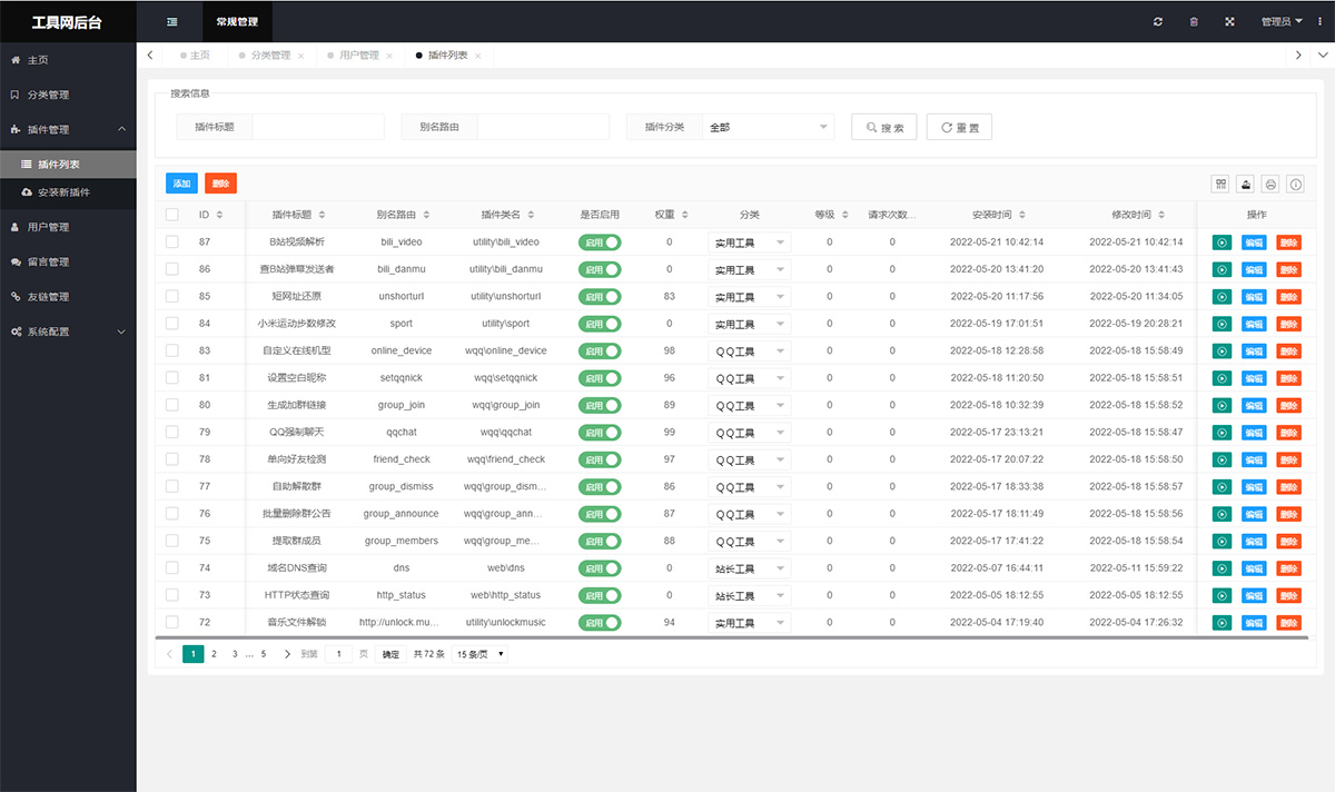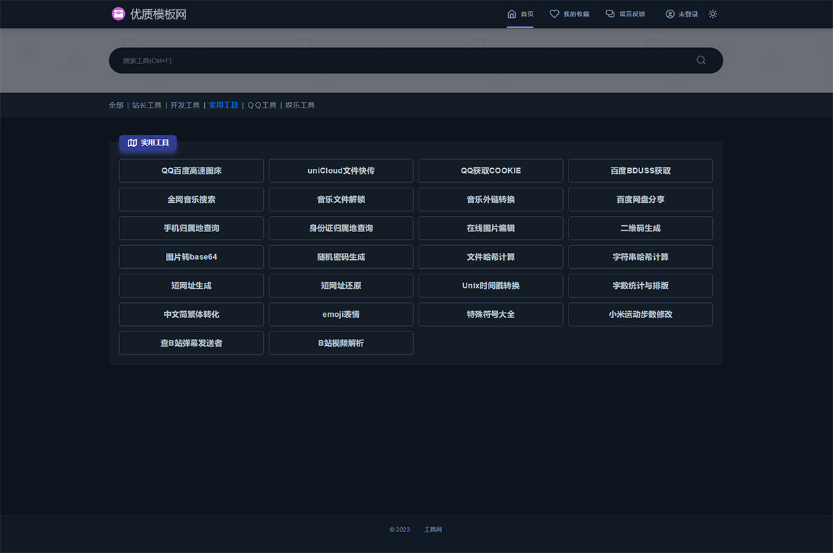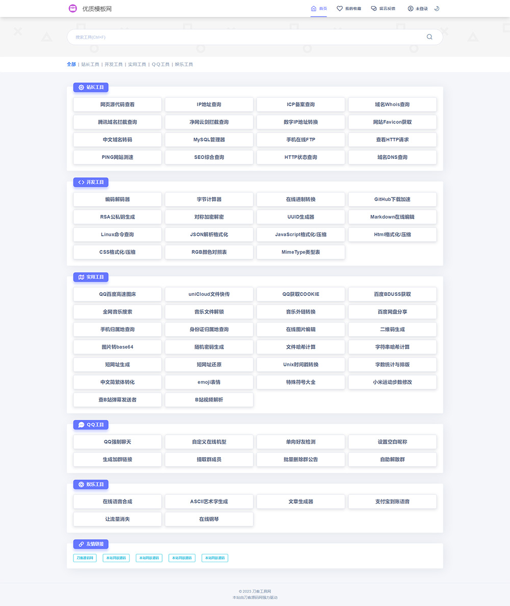 彩虹站长在线工具网源码 2023新版 全开源 支持暗黑模式 70多种在线工具,包括站长工具、开发工具、生活工具等。本地调用API、自带免费API接口,是一个多功能性在线工具箱网站源码,支持后台管理、上传插件、添加增减删功能。 环境要求: PHP >= 7.4 MySQL >= 5.6 fileinfo 扩展 安装教程: 设置运行目录为 public 设置伪静态 thinkphp 规则 访问 http://你的域名/install 进行安装